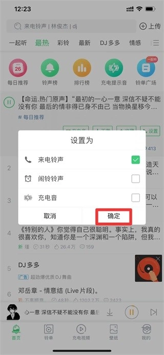 要在铃声多多里设置来电铃声,只需在其界面中挑选喜欢的音乐完成设置就行。我们以iPhone 12手机为例,用铃声多多设置来电铃声共需3个步骤,具体的操作流程如下: