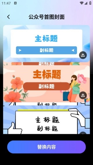4、在公众号首图封面界面,选择不同的素材,进行替换创作。