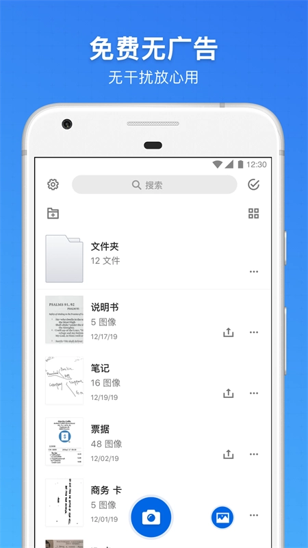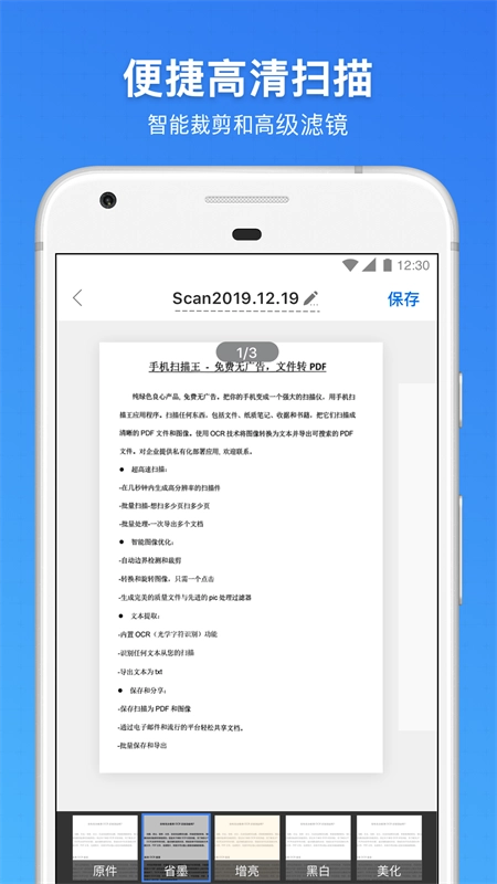 用手机拍摄文档,可生成高清的PDF文件与JPEG图片。