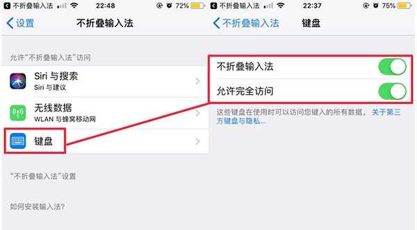 打开设置-键盘-开启不折叠输入法和允许完全访问