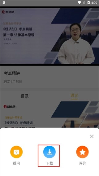 4、此时会弹出按钮,点击该按钮就能将讲义资料保存到手机里,之后你可以带着这些资料到线下打印。