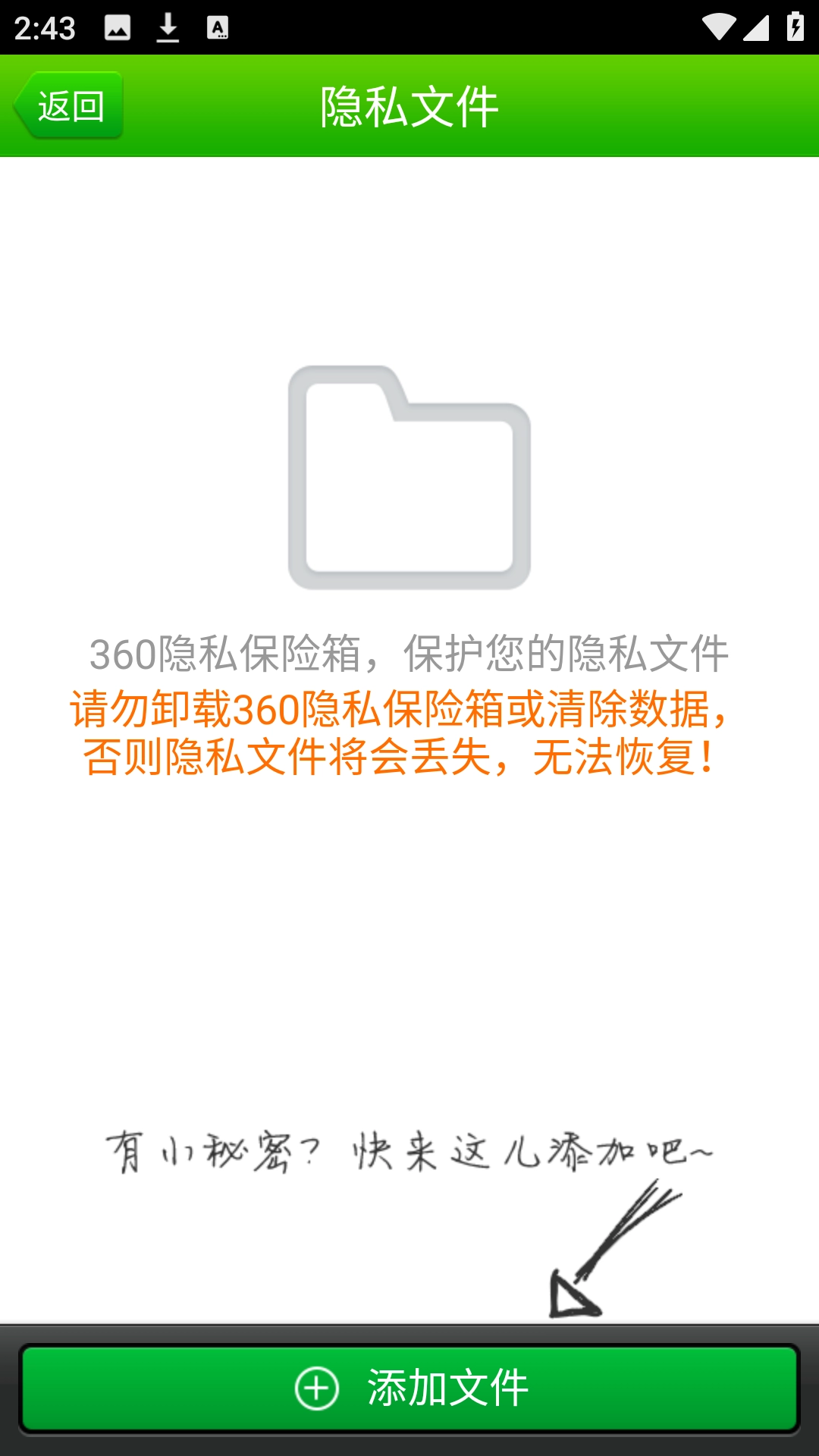 5、全部设置完成,我们返回首页进行添加图片、视频、录音、文件等内容进入隐私保险箱当中。