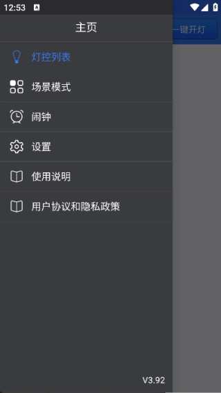 点击页面左上角的图标,就能查看场景模式、闹钟、设置等功能。