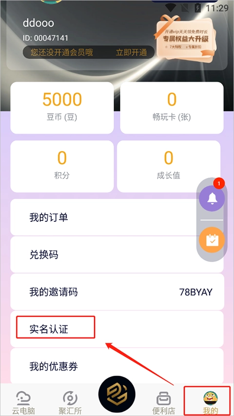 3、客户端:易腾云客户端,在客户端中管理账号安全,找到验证码选项。