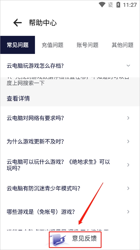 4、在“意见反馈”页面选择“问题类型”-“问题说明”,还有图片以及游戏即可点击提交。