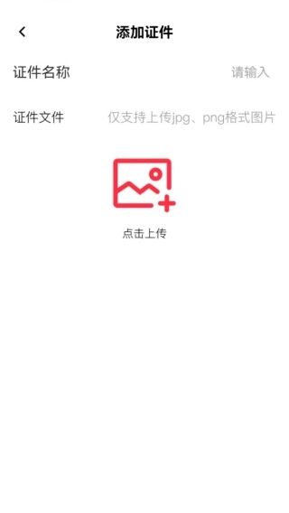 2、进入添加证件的界面,输入证件名称,点击上传证件照,保存即可。