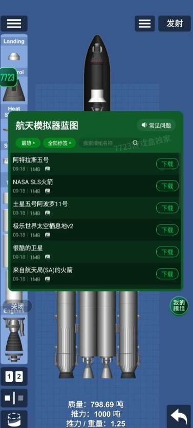 2、游戏内置了模组插件,玩家可以搜索并下载心仪的模组与火箭蓝图,体验更丰富的内容。这些模组和蓝图不仅提供了更多的设计灵感,还能让玩家快速上手,享受建造和发射火箭的乐趣。