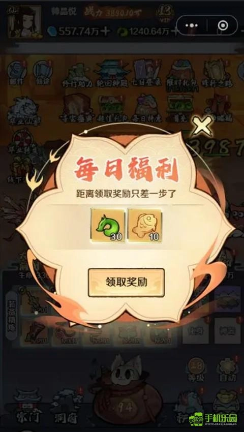 2、每在线一段时间,主界面会弹出漂浮红包,点击即可领取每日福利,每天最多可领取5次,每次包括30仙玉和10个小鱼干,记得不要错过;