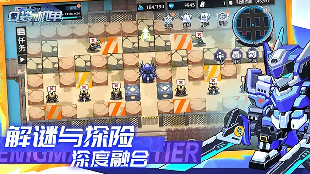 《口袋机甲》是一款集机甲题材与回合制策略玩法于一体的养成冒险RPG。游戏内设有帝国、骑士、商会、荒漠四大阵营,每个阵营都具备别具一格的场景风格、任务设定以及剧情脉络。玩家在探险途中,除了要完成战斗任务外,还能够收集资源、开启隐藏剧情、获得稀有机魂。另外,游戏在养成系统的设计上颇为细致:机魂能够借助战斗经验来提升等级,技能支持自主升级,装备系统也让玩家可以自由改造机体性能。