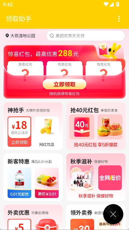 享受优惠:领取红包后,软件可直接跳转至美团与饿了么小程序,用户能直接下单支付,享受优惠价格。