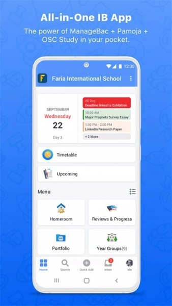 managebac安卓版,Managebac安卓版是上海学森信息科技有限公司开发的学习管理工具平台,集课程管理、信息管理与家校沟通等功能于一体。它能助力教师便捷创建课程单元、添加教学资源,设定学习目标与评估标准,进而为学生提供专业化学习调整,有效提升教育效率。此外,该版本还支持教师实时记录学生成长档案,留存学习过程与成果,帮助教师和家长更清晰地掌握学生在校状况,以便明确正确的教育引导方向。