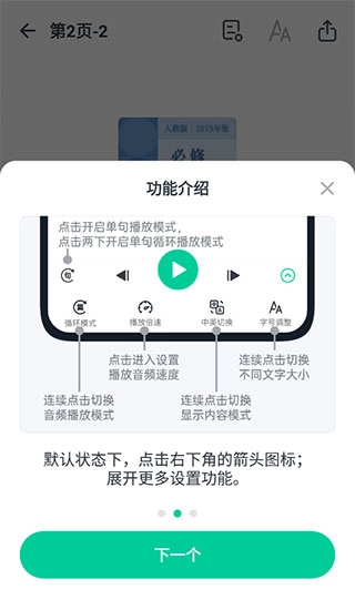 4、点击循环模式按钮能够切换音频的播放方式,此外,播放倍速、中英语言切换以及字号大小调整等功能都可以进行自由设置。