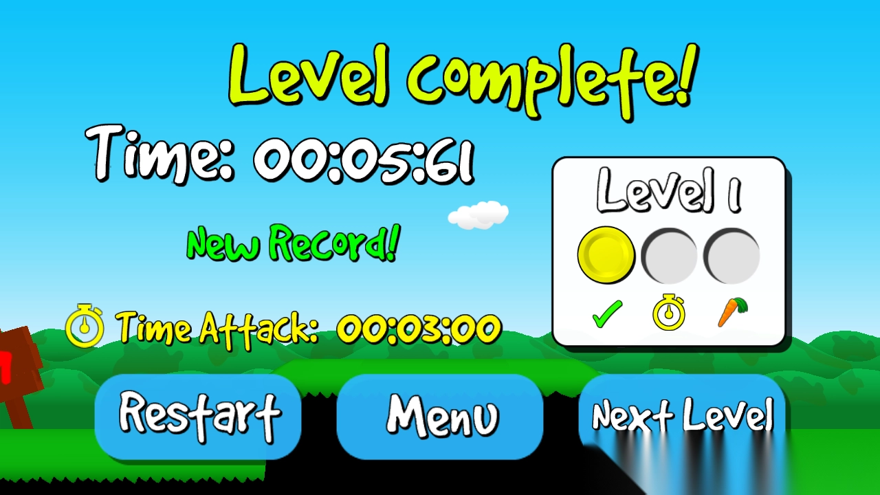 3、需在规定时长(例如TimeAttack所显示的时长)内,操控兔子人成功抵达终点,完成关卡挑战,进而解锁后续内容。