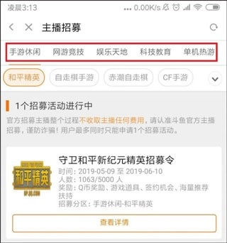 2、点击屏幕左上方的头像进入登陆个人中心页面,找到菜单栏拉中的主播招募,并点进去。