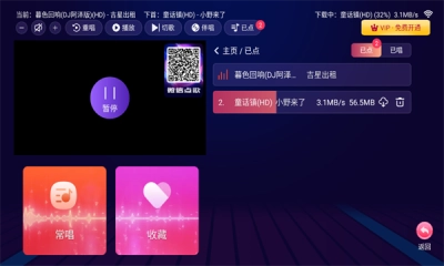 TV大屏适配方案:通过手机扫码即可完成点歌操作,电视端将同步呈现歌词与MV内容。