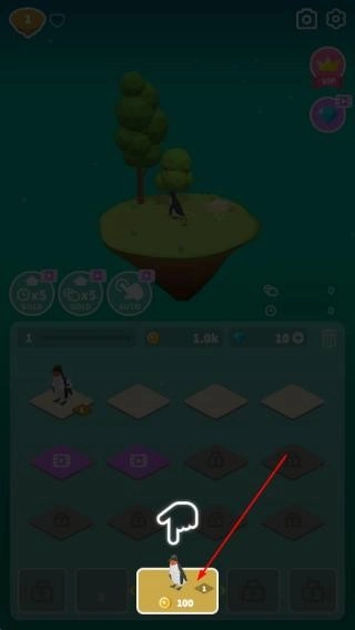 2、在下方界面,点击黄色企鹅图标,放置企鹅到岛屿。