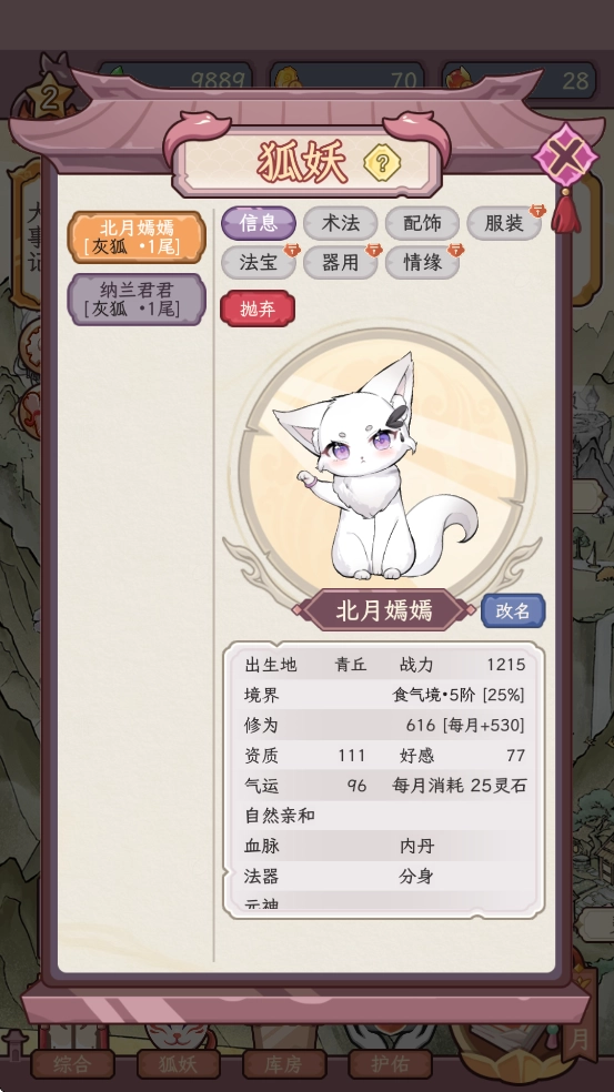 2、每只小狐狸的资质都是不同的,可以刷新。