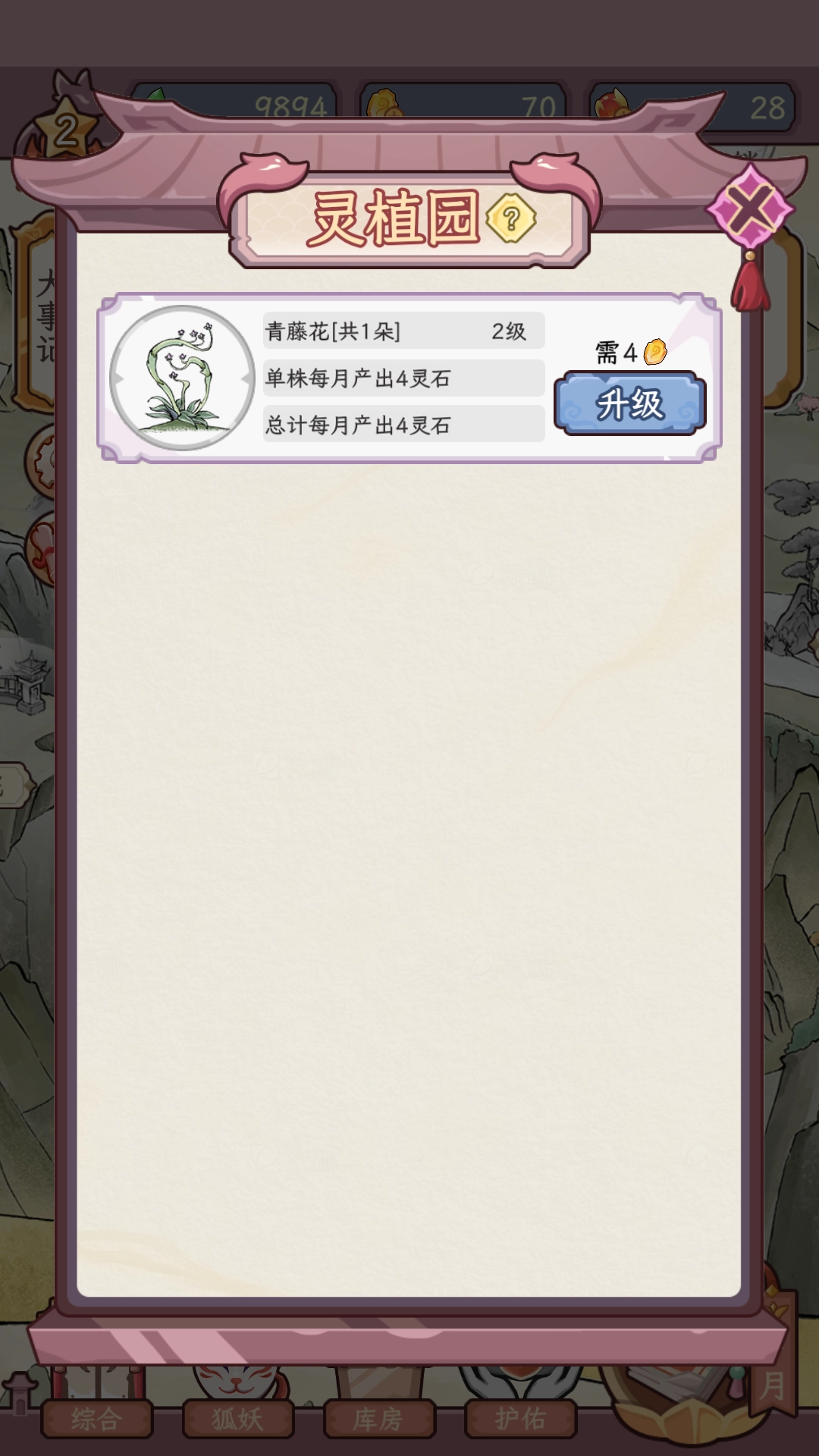4、灵植园中可以进行种植和灵植升级。