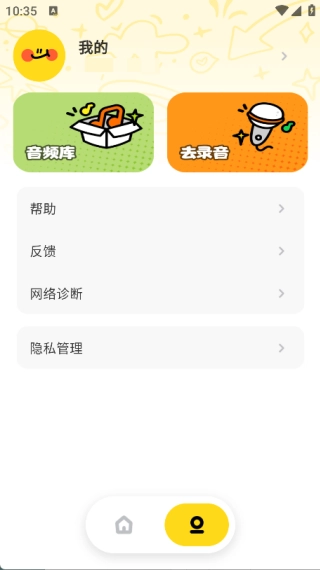 4、在我的页面可以了解音频库信息,也可以去录音等操作。