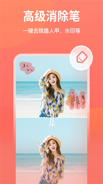 软件为用户提供的高级消除笔,支持一键涂抹去除意外出境的路人
