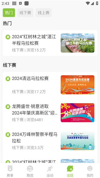 6、【赛事报名】您可以随时了解全国数十场马拉松、越野赛、铁人三项赛的最新信息,并报名参加比赛。