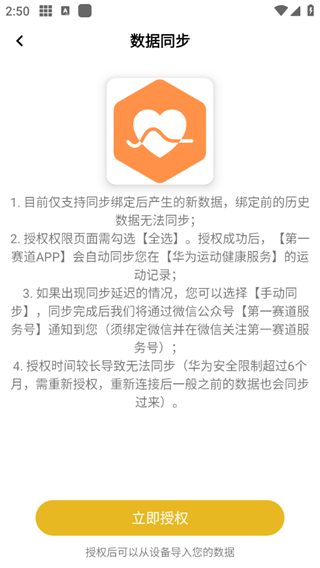 3、要让第一赛道安卓版进行授权,这样可以同步数据,点击立即授权。