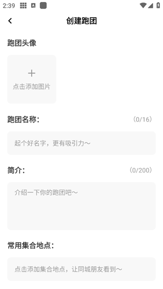 2、在创建跑团页面中填写相关信息,点击创建按钮就可以了。