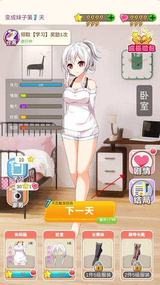 2、根据变身天数解锁不同的场景及关卡,每一关都会拥有多种结局,是完美的化解尴尬,还是瞬间社死全凭你的选择。