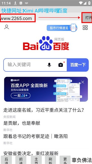 6.或是在上方直接输入想要进入的网址后点击打开