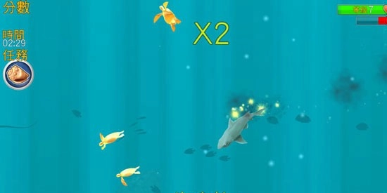 玩家朋友们别总想着抓大鱼拿高分,觉得小鱼分数低就不屑于捕捉。鲨鱼的饥饿程度和游动的距离是挂钩的,要是不及时进食,很容易就会饿死。所以千万别挑食,不管大小鱼都得抓。
