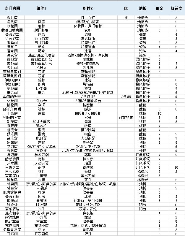 更有丰富的专门房间,来帮助房间和居民的升级!