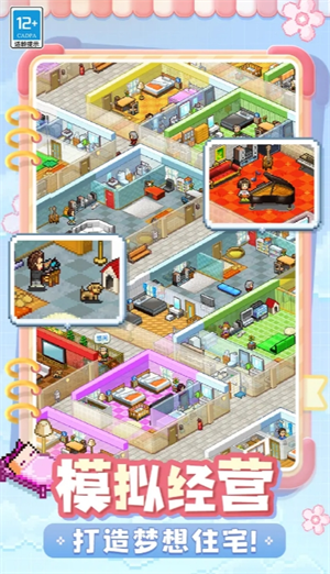 《住宅梦物语》汉化版,由日本游戏公司Kairosoft(开罗游戏)开发,是一款模拟经营类游戏。游戏核心是打造人气公寓,见证居民日常生活,巧妙融合经营策略与温馨养成元素。 玩家需逐步规划设计房屋布局,精心装饰营造不同风格房间,吸引更多居民入住。在这过程中,能感受居民百态人生,体验他们的喜怒哀乐。若你钟情经营类游戏,又对温馨养成元素感兴趣,那这款游戏定值得体验。