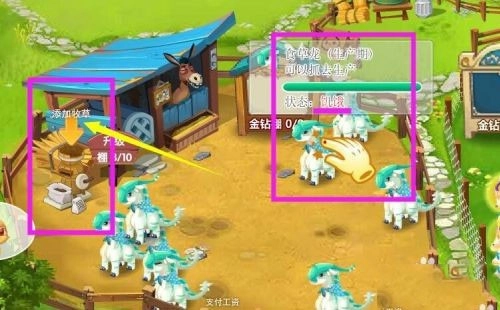 喂饱了以后,看到有可生产的动物,我们点击上方的一键抓取。抓取后,进入倒计时