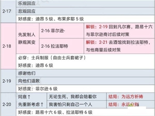 靠近温柔风流的人↑(影响1-8)→平静说出菲尔逊名字↑俏皮地说不认识菲尔逊↑故意喊他拉法耶特↓