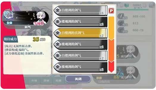 无论射击还是符卡,都有以下列表构成,普攻为第一行输出,加入一个P点,则增加对应黄色箭头行输出,P点2对应橙色箭头行,P点3对应红色行。
