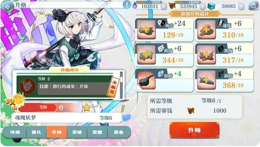 通过主线掉落的强化素材,来提高人物的基础属性。