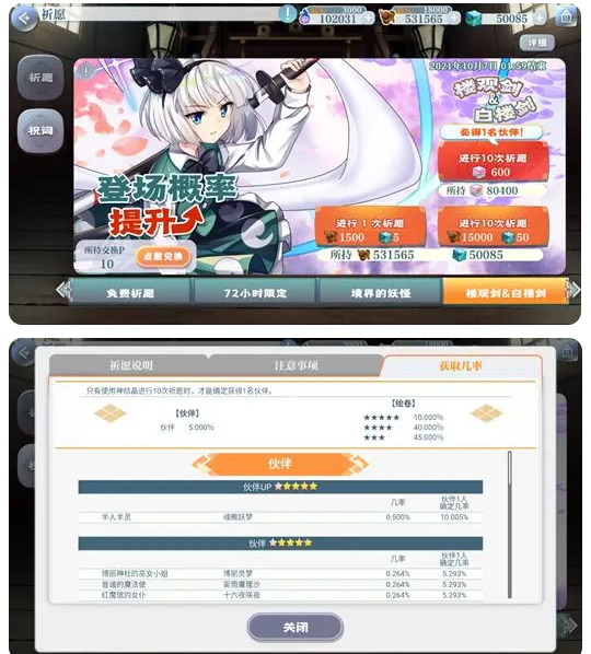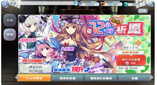 总之有条件的就抽三发必中半价池,无论是妖梦,还是幽幽子都是很不错的角色,八云紫不适合打八云紫)