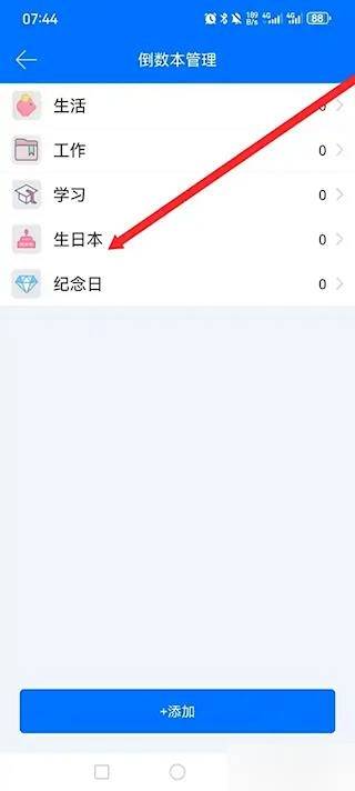 继续选择“生日本”子类别,进入生日纪念日的专属设置页面。