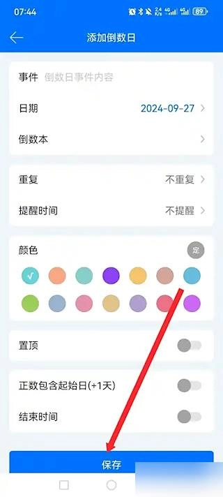 在编辑页面填写事件名称、日期等详细信息,确认无误后点击保存按钮,即可完成相关设置。