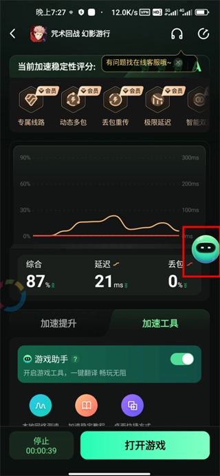 选择你想玩的游戏,然后开启加速功能(这里就拿《咒术回战》来举例说明啦);