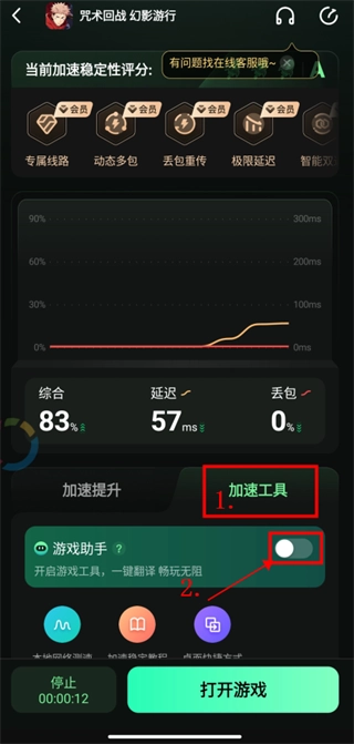 进入加速界面后,先点击加速工具,接着点击开启游戏助手。