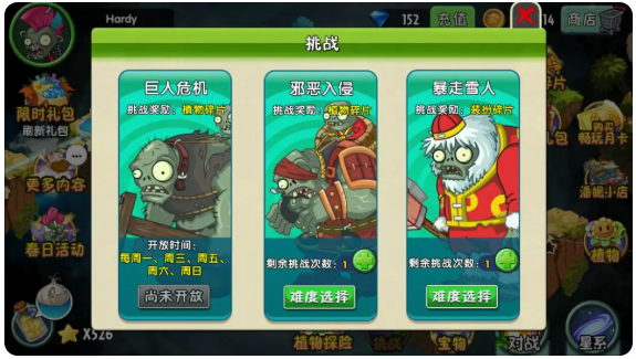 在这个模式之中,有三种玩法,每天获得的奖励也不同。但是需要注意的是,“邪恶入侵”是每周的周二、周四、周六、周日开放;“巨人危机”是每周的周一、周三、周五、周六及周日开启;其次,“暴走雪人”是每天都开启。