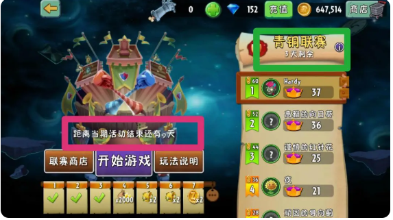进入一个模式后,我们可以看见有三个模式选择,简单模式僵尸1阶,困难模式僵尸2阶,传奇模式僵尸3阶,大家可以根据自己植物的阶数和想获得的奖励来选择。