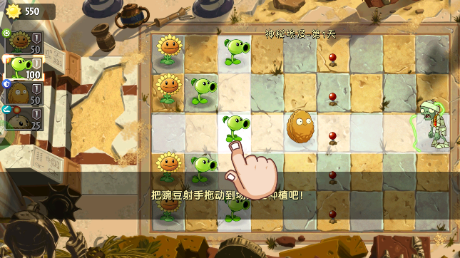 4、接着拖拽植物到格子上进行放置;