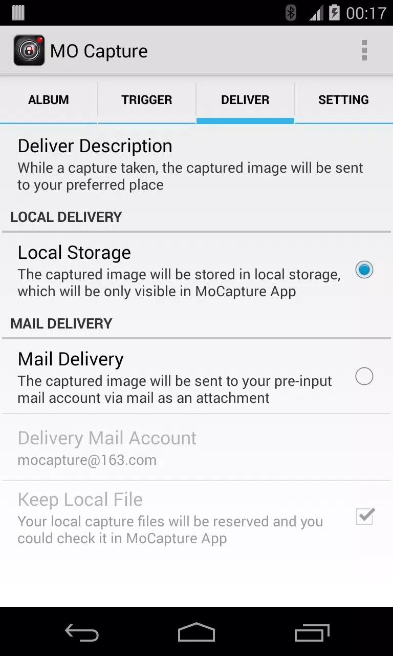 你可以依据所选的触发事件来拍照,之后按照自己的选择把拍摄好的照片保存起来或者发送出去。