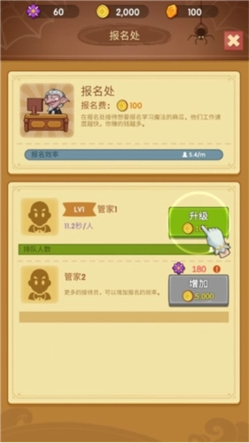 这是一款以魔法为主题的模拟经营游戏,玩家将扮演魔法学院的院长,学院的建设发展完全由玩家自主决策。你可以通过提升课程等级、增加班级人数、调整收费标准并优化教学质量,以此吸引更多魔法天赋出众的学生前来修习魔法;还能开设丰富多样的课程,并为不同课程打造独具特色的教室风格。此外,别忘了升级报名处设施并增配地精管家,他们能有效提高学生报名手续的办理效率。