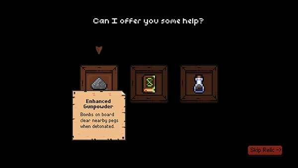 屏幕左上角会显示已获取的遗物,即玩家已经得到的物品。屏幕左侧还有一个小垃圾桶图标,点击它就能跳过当前待发射的弹珠,切换使用下一颗弹珠进行发射。