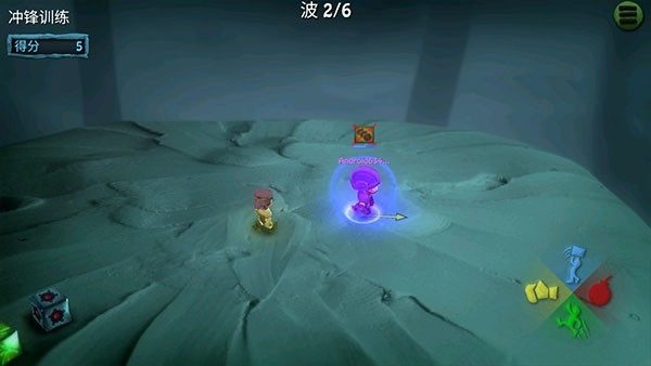 完成新手教程后,就可以进入练习演练模式了。在关卡里会随机出现各种盒子,你需要一边收集这些盒子,一边和对手战斗。屏幕左上角显示的是你的得分,加油击败对手吧!