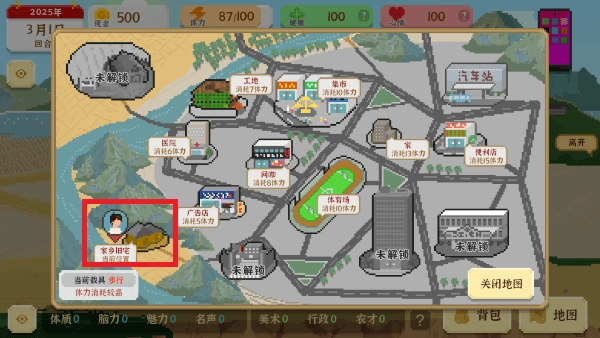 要是没什么事可做了,就回家睡觉吧,这样能直接恢复满体力,好开启下一回合。