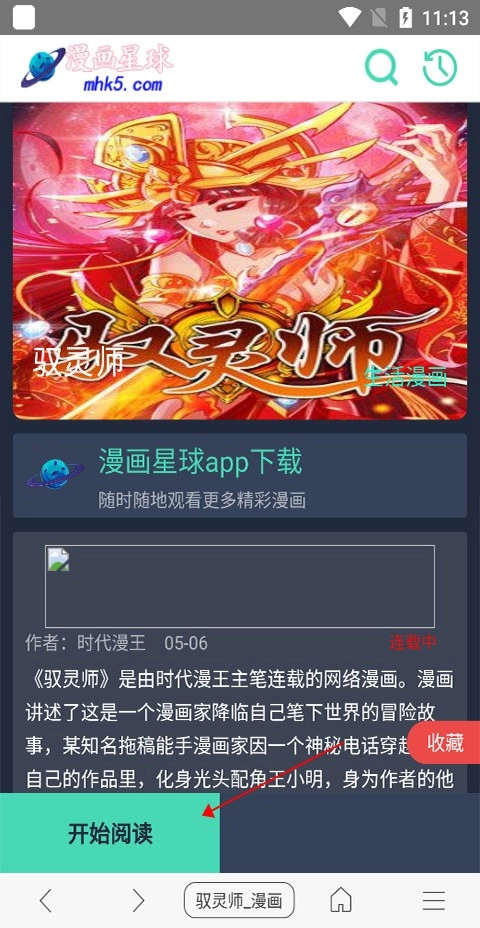 搜索漫画后点击进入漫画页面